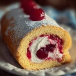 Serving: Slice the rolled cake into portions and serve. Top with fresh cherries, drizzled cherry sauce, and whipped cream swirls. Dust with powdered sugar for a beautiful finish.