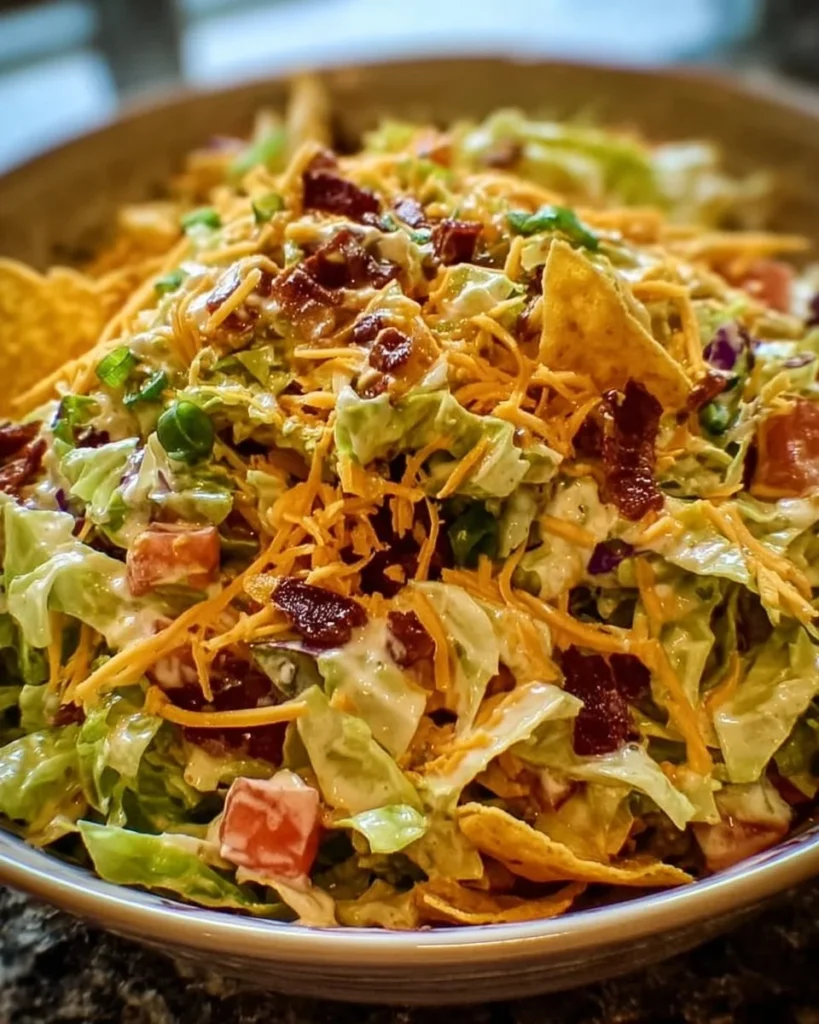 Crunchy Frito Cowboy Cabbage Salad is perfect for those looking for a fresh and easy dish. This salad combines crisp vegetables, creamy dressing, and the fun crunch of Fritos. It’s great as a side dish for barbecues or potlucks, and it can even be a light main course. With its colorful ingredients and delightful flavors, it’s sure to be a hit with family and friends.