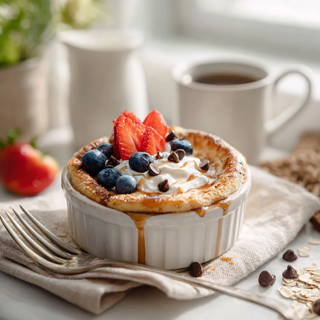 Make several fluffy baked protein pancake bowls at once for an easy grab-and-go breakfast throughout the week. Reheat individual bowls in the microwave for 30-60 seconds or in the oven at 150°C (300°F) for about 5-10 minutes until warmed through.