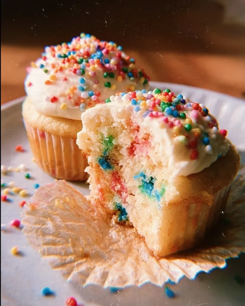 - Frost the cooled cupcakes and sprinkle with additional sprinkles if desired.