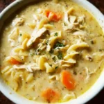 Homemade chicken noodle soup is a comforting and nourishing dish. It brings warmth and delight with every spoonful. This easy recipe uses pre-cooked rotisserie chicken, saving you time while still delivering rich flavors. This soup is perfect for chilly days, when you’re feeling under the weather, or when you just want a taste of home-cooked goodness.