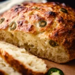 This No-Knead Jalapeño Cheddar Bread combines spicy jalapeños and rich cheddar cheese, offering a flavorful and crusty loaf with minimal effort.