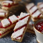 Tender Linzer Strips are best served on a decorative plate, dusted with powdered sugar. They can be enjoyed as a sweet snack or dessert. Pair them with a cup of tea or coffee for a delightful treat.