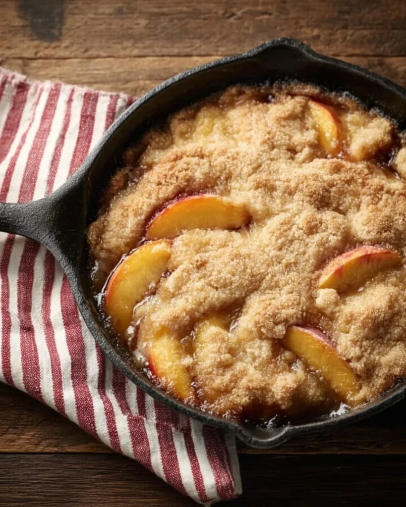 - In a large bowl, mix sliced peaches with sugar, cinnamon, and lemon juice. Spread the peach mixture in a greased baking dish.